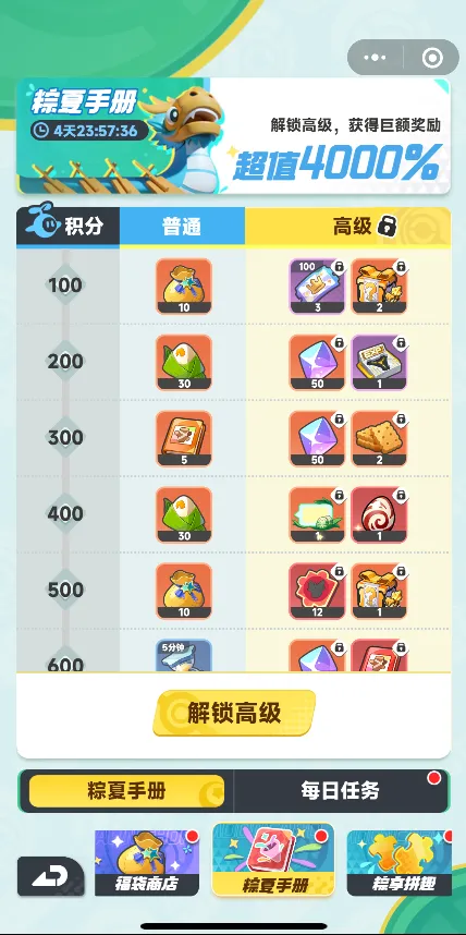 想解锁豪华奖励?限时开启高级手册!升级即享高额返利,端午限定福利不容错过~