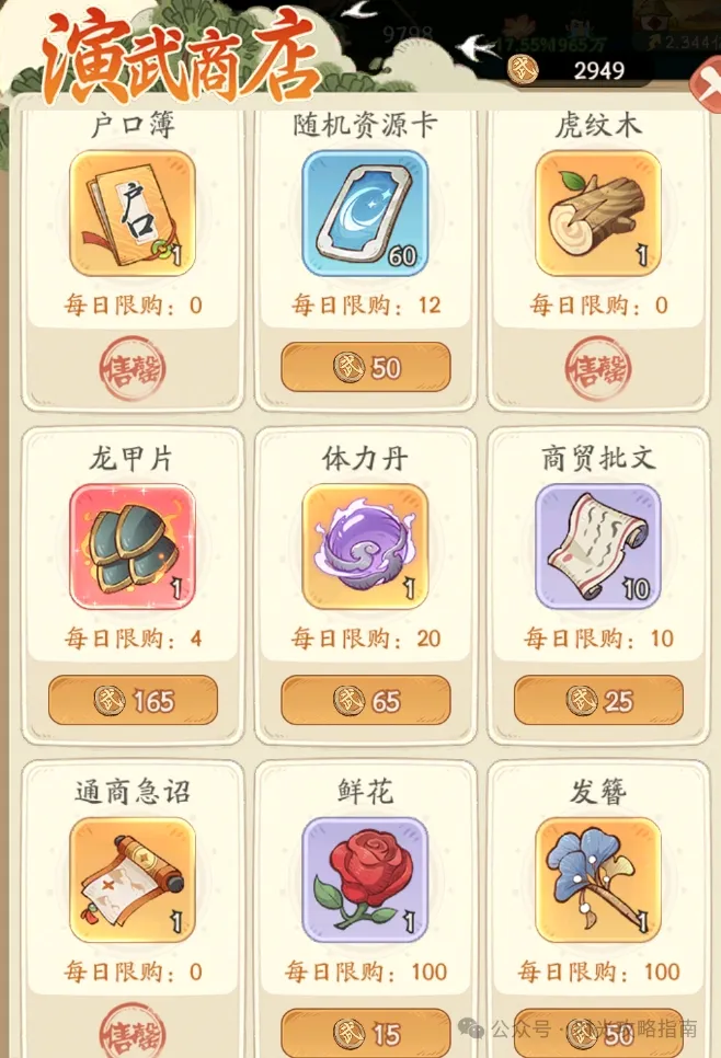 2、联盟商店-除了户口,地契,项羽碎片必买,剩下的自己看联盟贡献自己分配购买。