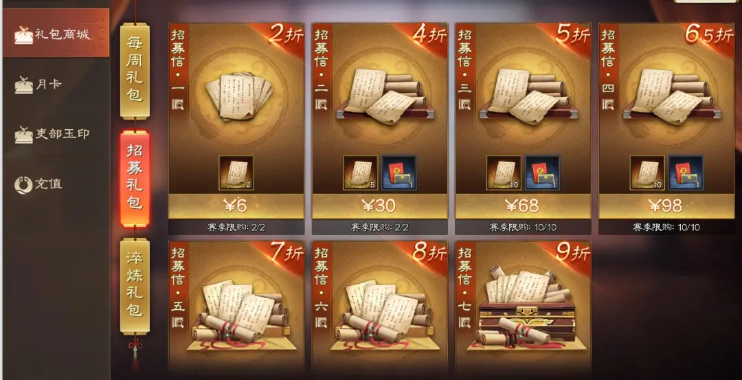·活动规则:活动期间新增特惠招募信礼包售卖(具体折扣和数量详见游戏内)